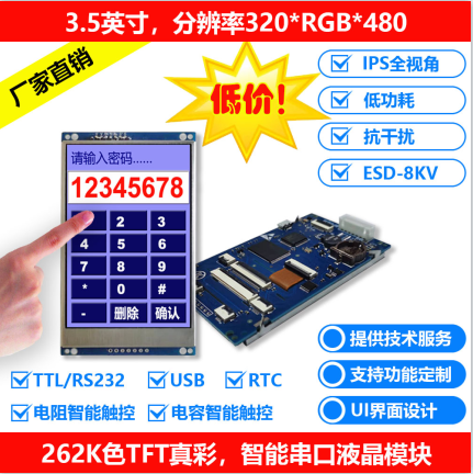显示效果:采用 IPS 全视角技术,可从各个角度清晰观看屏幕内容,320x480 分辨率能满足多数基础显示需求,使图像和文字显示较为清晰细腻。
