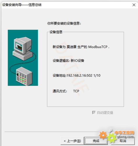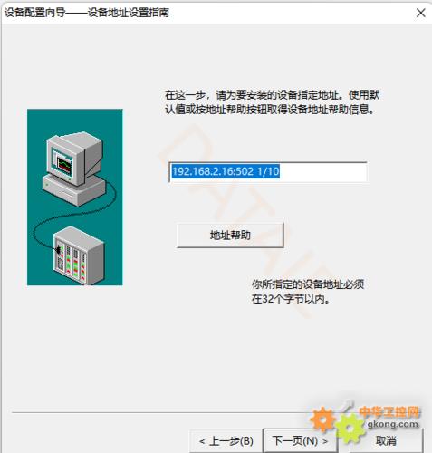 设备地址格式:192.168.2.16是PLC地址;502默认端口号;1是单位ID;10是超时时间。